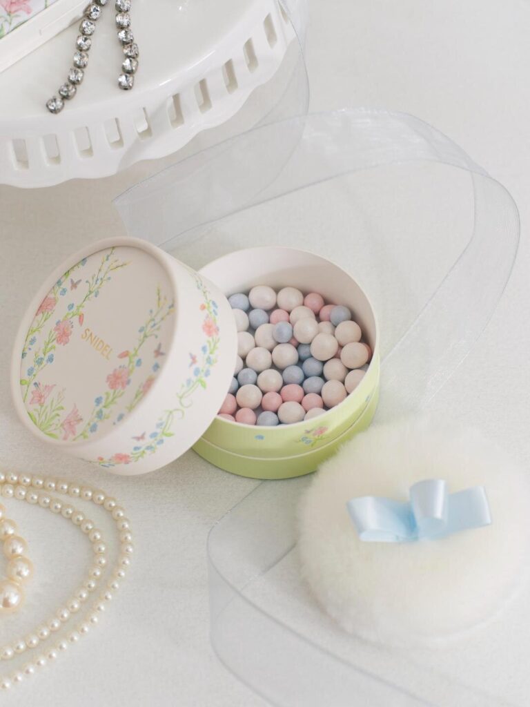 さらに、スナイデル ビューティ初のボディパウダー「スナイデル エターナル ラディアンス パウダー」もラインナップ。純白のピュアホワイト、幸福感のあるピンク、透明感を高めるピュアブルー…カラフルなボールをパフで軽く肌にのせると、凹凸や毛穴をふんわりカバーしながら、光に包まれたような上品な輝きと透明感を演出。仕上がりだけでなく、見た目にも心ときめく1品だ。